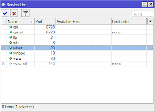 3. Lakukan pengetasan lagi dengan mencamtumkan Port baru Winbox yang telah dikonfigurasi pada Router Mikrotik